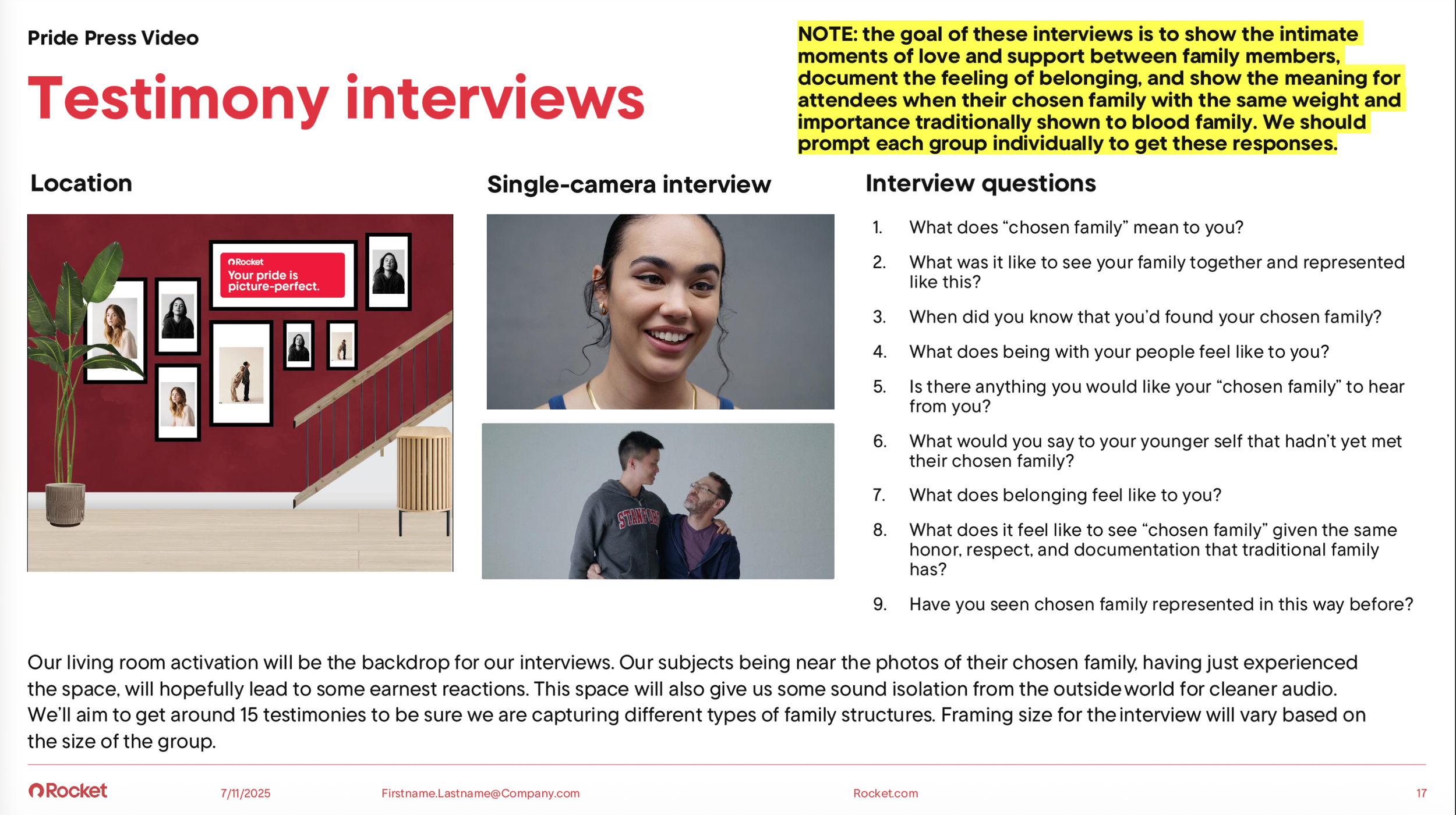 The family portrait is a long-standing tradition, but Rocket introduced something new: Chosen family portraits. To honor the people who love and support the LGBTQ+ community but go unrecognized. Rocket set up a free professional photo studio at Motor City Pride. Because home isn’t just where you live — it’s where you feel love, belonging, and acceptance.